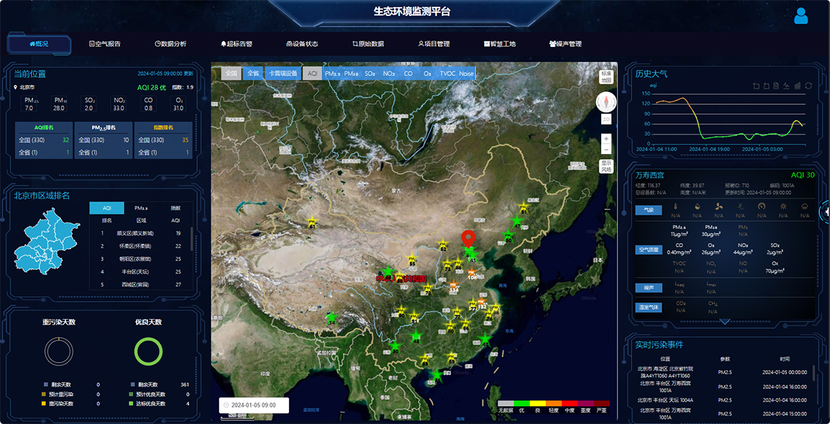 博识生态环境监测平台是集数据接收、存储、展示于一体的智慧化管控平台。包含空气污染地图、噪声地图、污染日历、空气报告、臭氧预测、污染分析、声源识别、工单系统等多个功能模块。